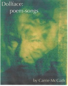 Carrie McGath’s new chapbook, Dollface: Poem-Songs (self-published), is comprised of lyrical strains representing conversations between Surrealist artists, Hans Bellmer, Unica Zürn, and a voyeuristic speaker who enters their relationship. After studying the work of these artists and their tumultuous love affair that ended with Zürn jumping out of the window of Bellmer’s Paris apartment, these poem-songs started to come to life for McGath.